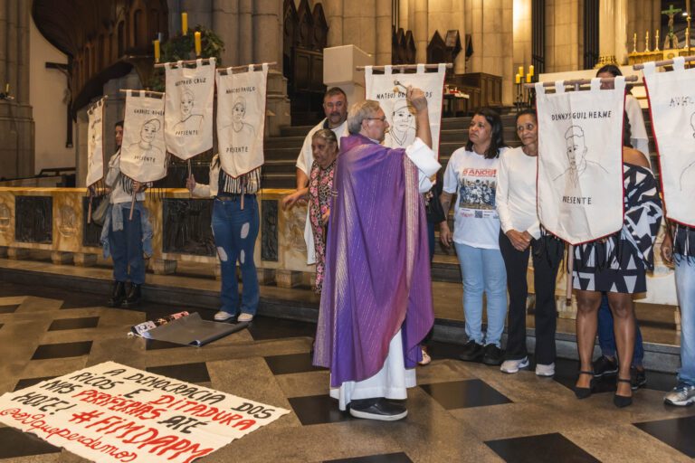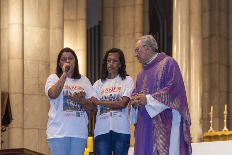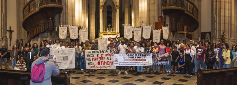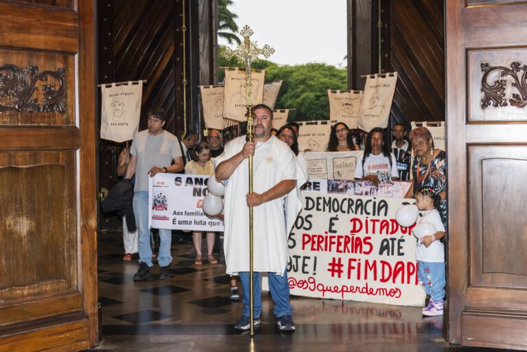 Foi realizada a missa em homenagem aos 9 que Perdemos no Massacre de Paraisópolis, celebrada pelo padre Antônio Naves, que conduziu o momento com acolhimento e firmeza, lembrando a importância da memória e da luta por justiça.